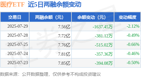 本站消息,7月29日,医疗ETF(512170)融资买入2.74亿元,融资偿还2.9亿元,融资净卖出1652.39万元,融资余额7.51亿元。